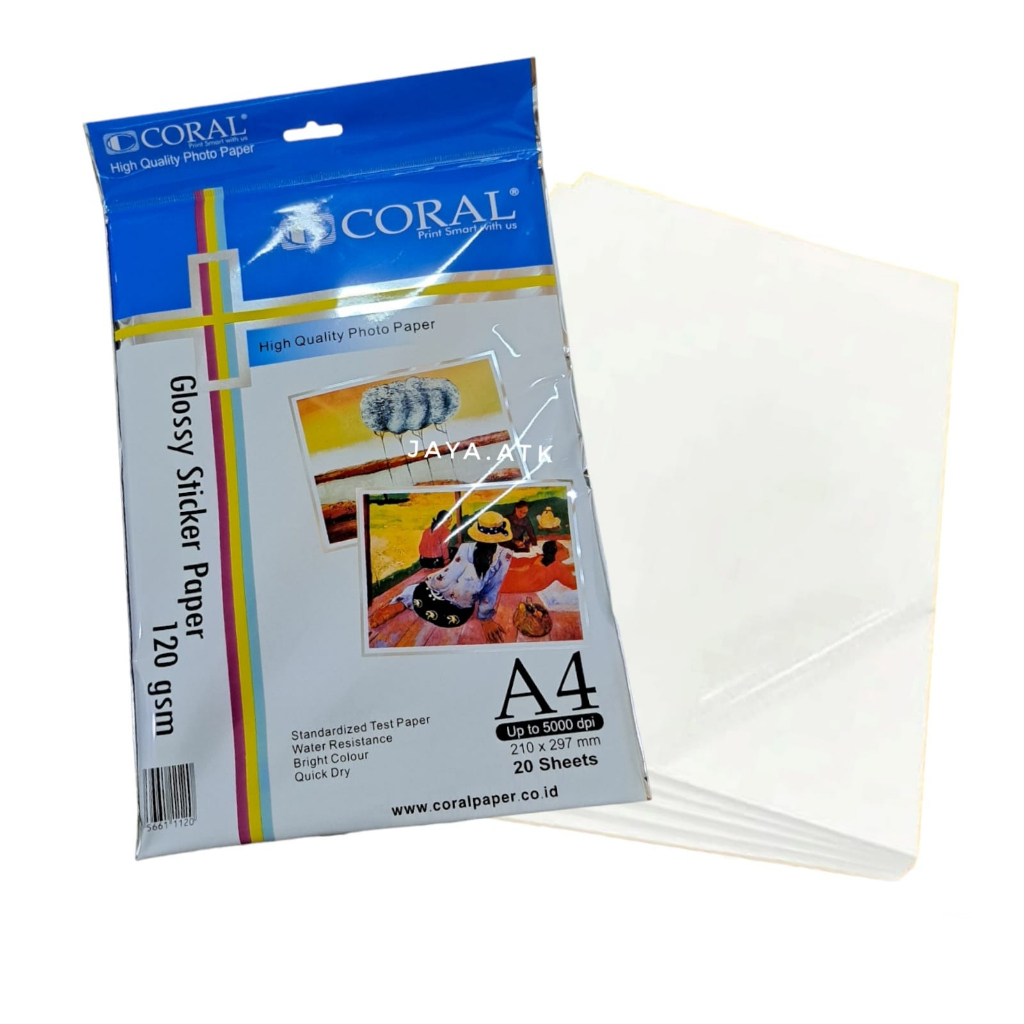 KERTAS FOTO STIKER LABEL GLOSSY A4 120 GSM 10 LBR CORAL PHOTO PAPER