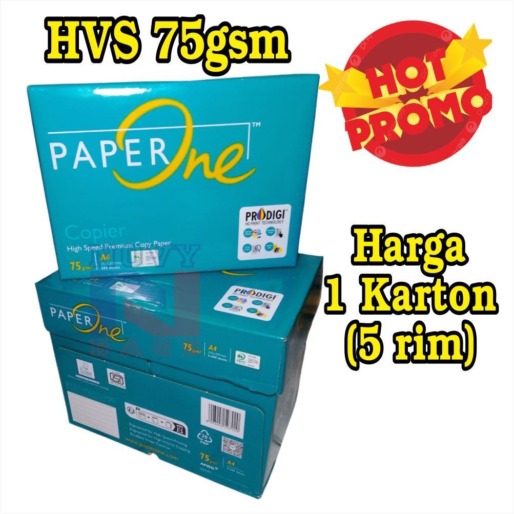 KERTAS HVS 75gr PaperOne ORIGINAL Kertas A4 75gr Kertas HVS 1 KARTON / 5 RIM