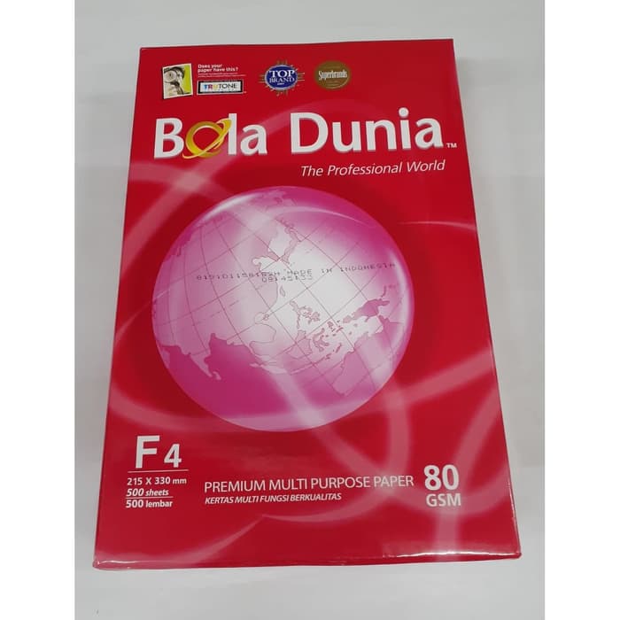 Kertas HVS bola dunia F4 80 gram isi 500 lembar.