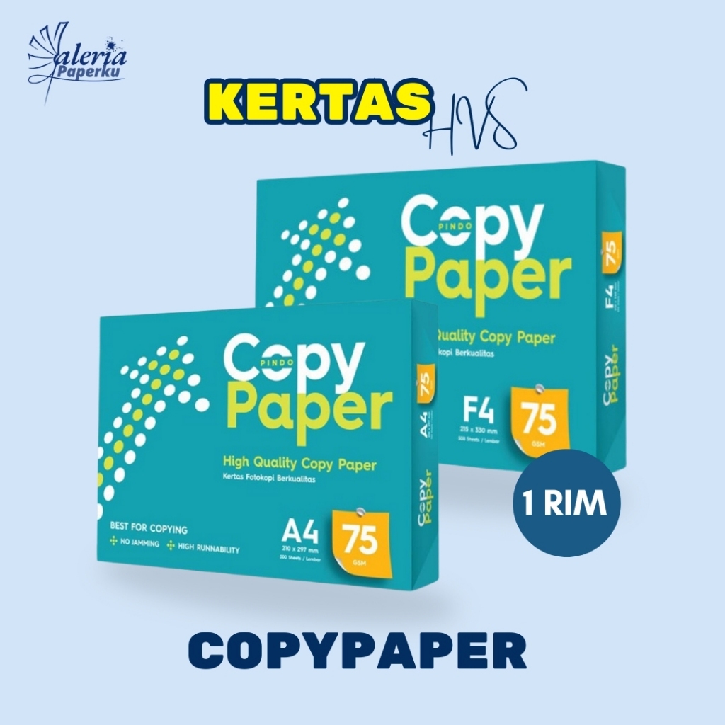 KERTAS HVS COPY PAPER A4 / F4 75 GSM 1 RIM (ISI 500 LEMBAR) | KERTAS HVS A4 F4