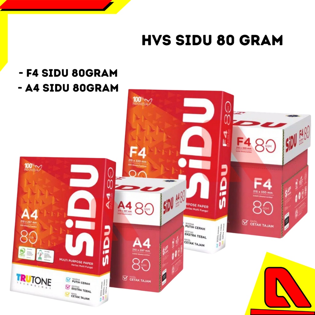KERTAS HVS SIDU F4 80 GRM / KERTAS HVS SIDU A4 80 GRAM