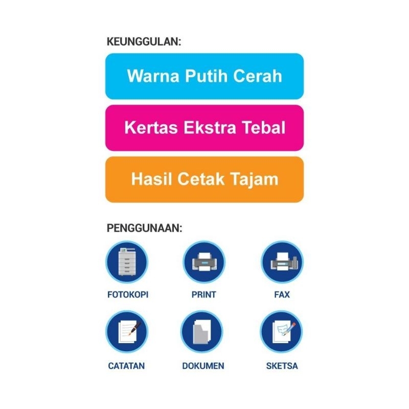 > Cocok untuk digunakan di kantor/perusahaan (laporan, memo, proposal) , usaha fotokopi dan rumah tangga serta pelajar (surat, tugas, skripsi, CV)