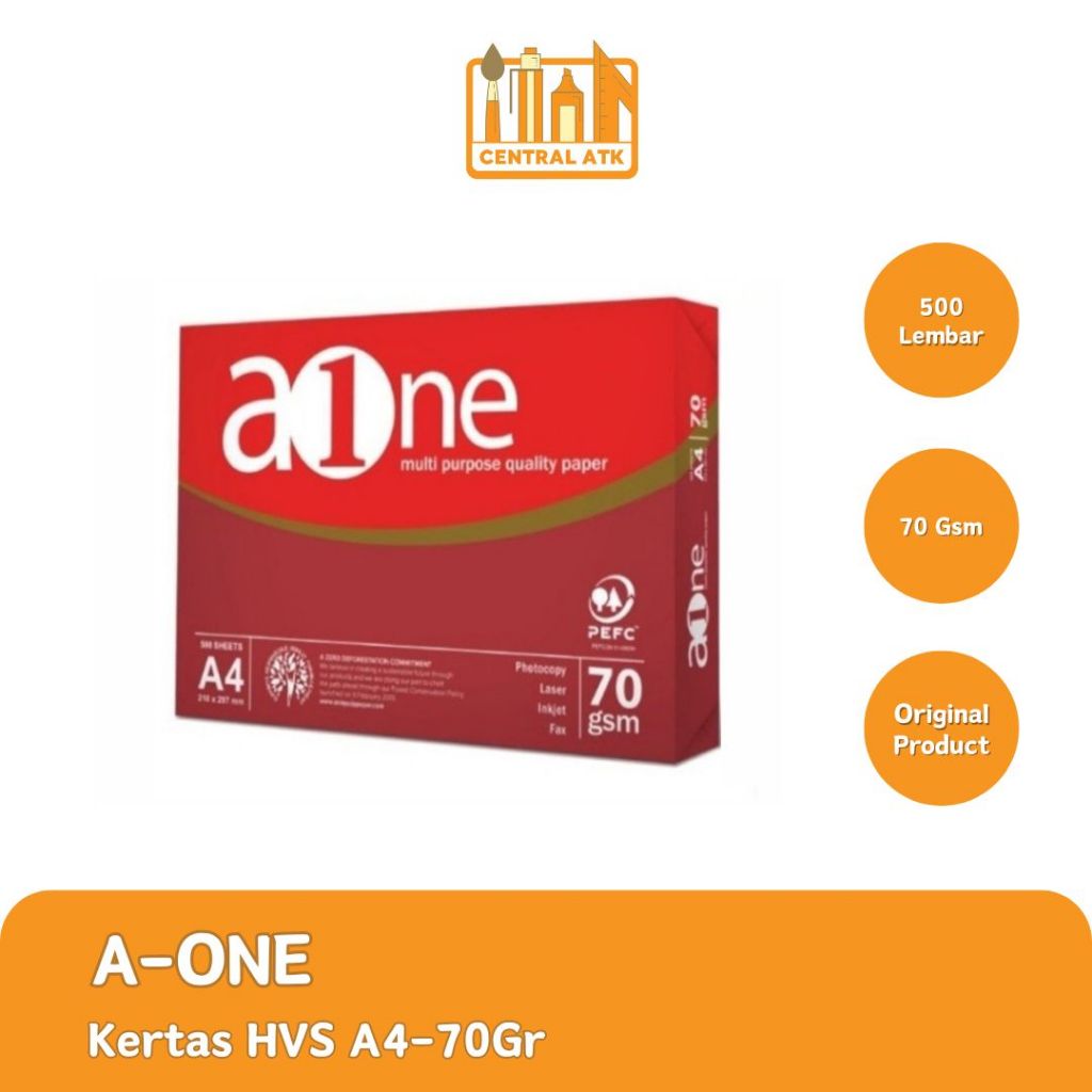 • HVS A-ONE adalah kertas fotocopy putih, berkualitas tinggi untuk penggunaan harian dan dapat digunakan untuk keperluan Print dan Fotocopy