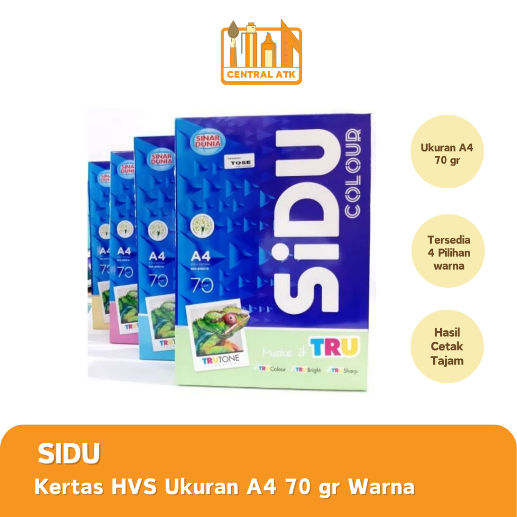 • SPESIFIKASI = Kertas HVS Sidu A4 70Gr Colour
