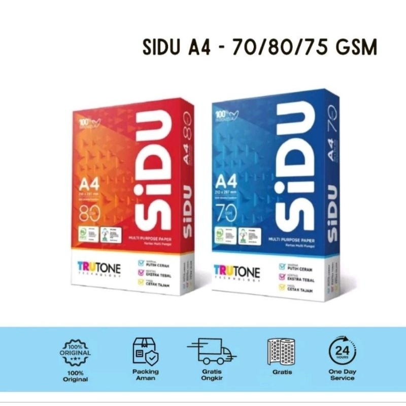 KERTAS HVS / PRINT / FOTOCOPY SIDU A4 80 GRAM 1 RIM 500 LEMBAR