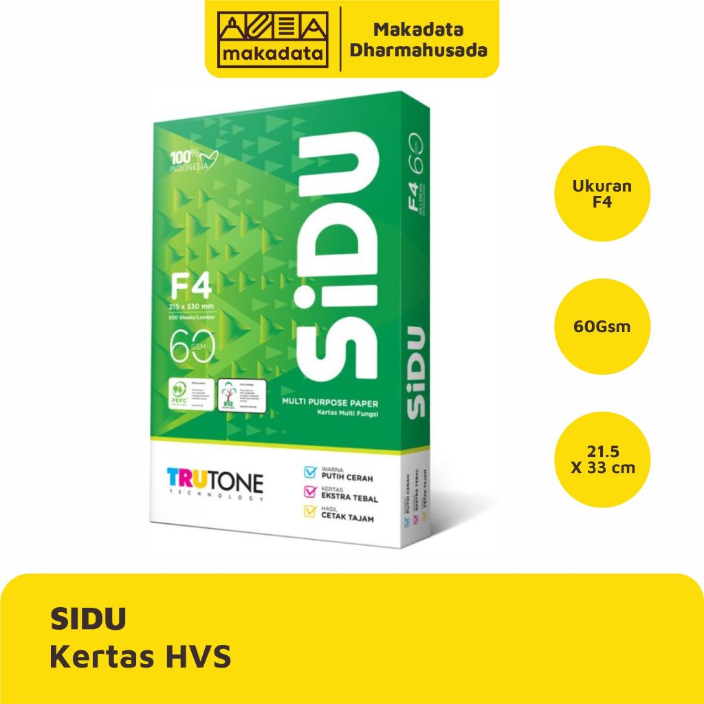 KERTAS HVS | PRINT | FOTOCOPY SIDU F4 60 GRAM (1 RIM)