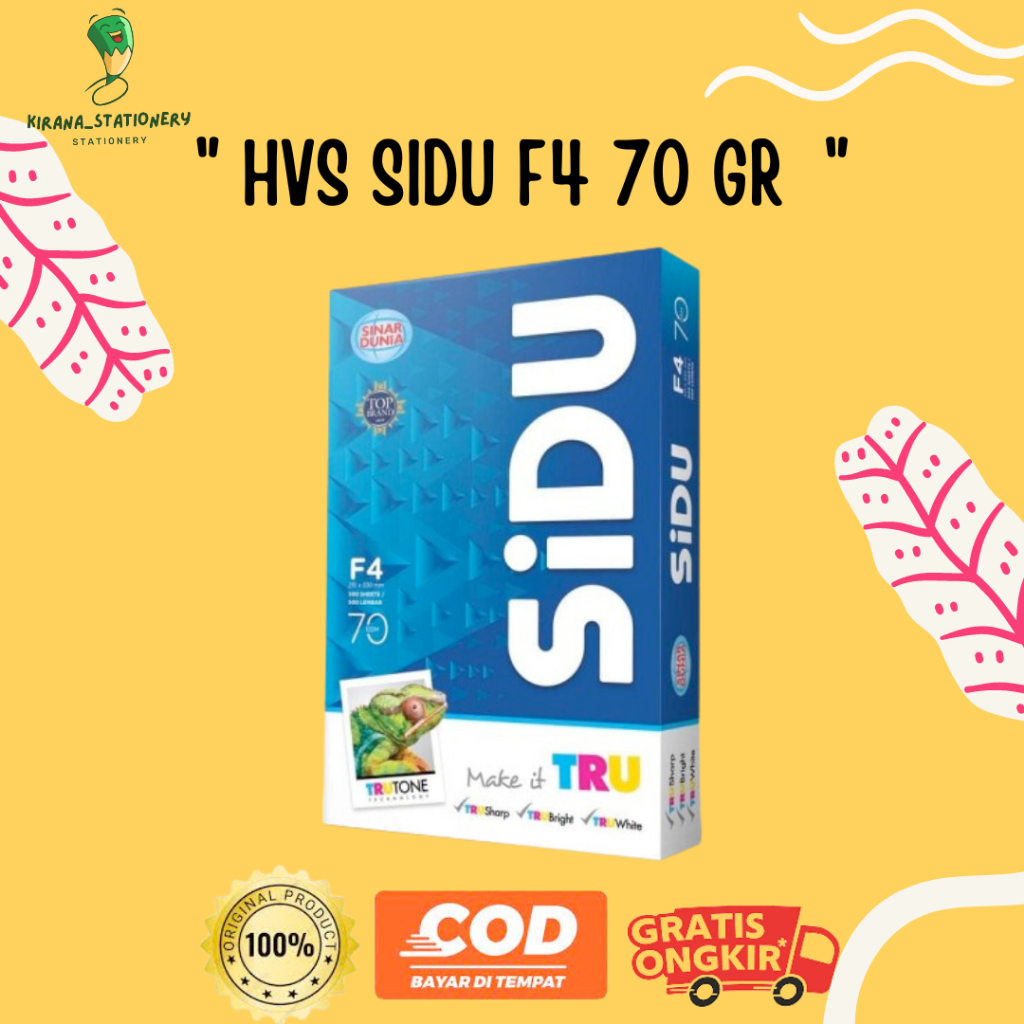 KERTAS HVS PRINT FOTOCOPY SIDU F4 70 GRAM (1 RIM)