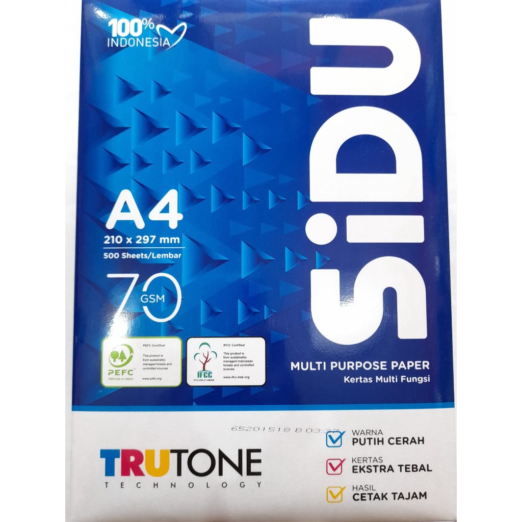 KERTAS HVS SIDU A4 1 RIM (500 LEMBAR)