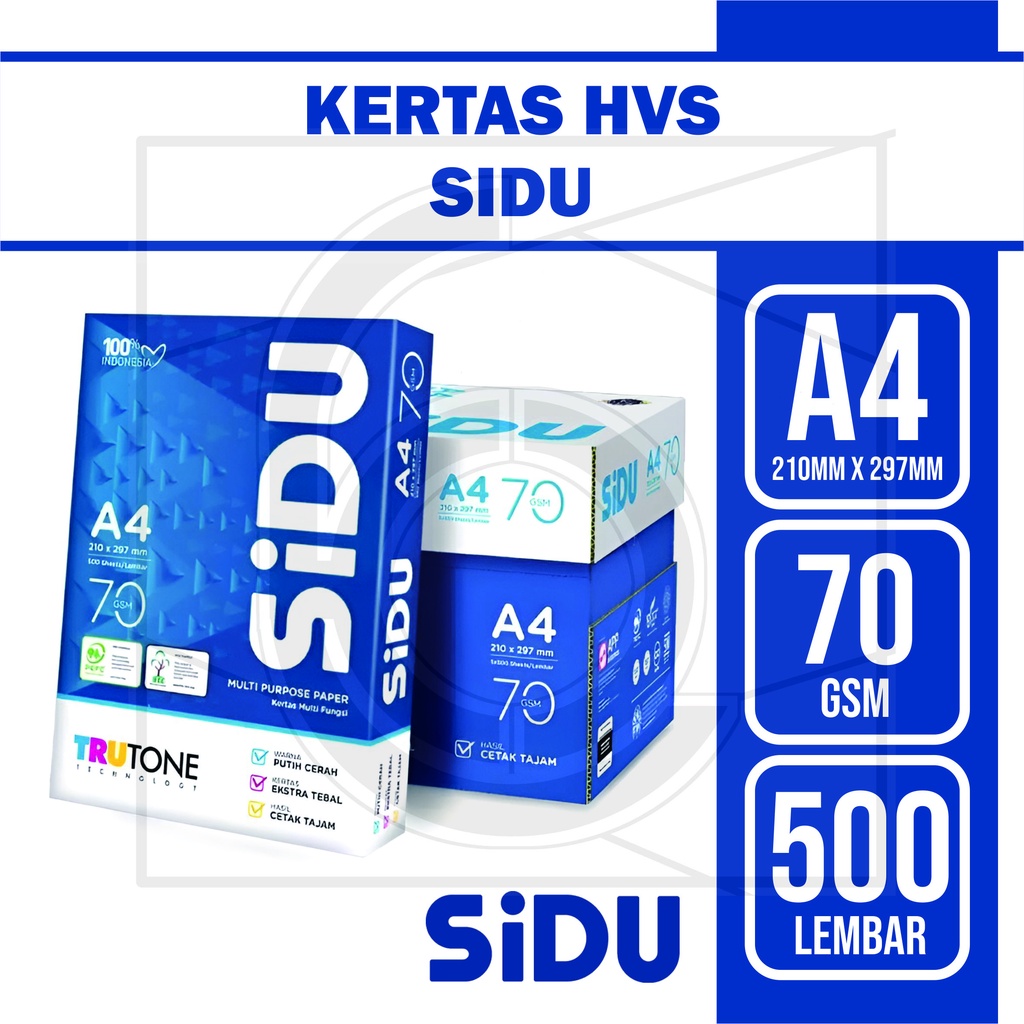 KERTAS HVS SIDU A4 70 GSM 1 RIM