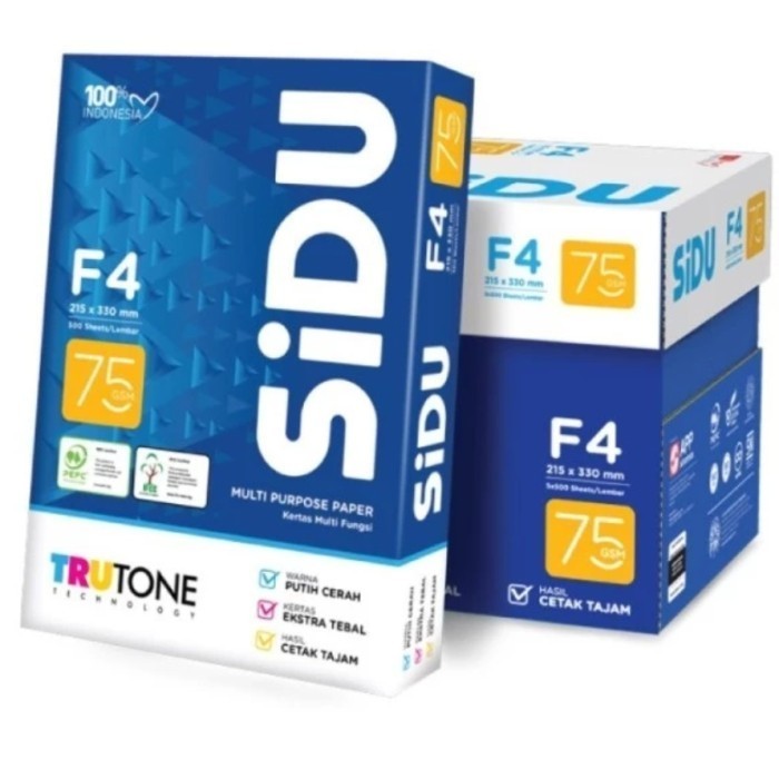 KERTAS HVS SIDU UKURAN A4 / FOLIO 75 GRAM PER RIM