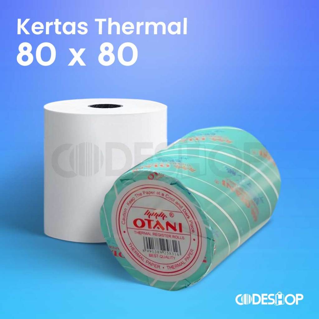 Ini adalah Kertas Thermal Otani Ukuran 80 x 80 mm. Kertas thermal adalah kertas yang sudah dilapisi bahan kimia thermal sehingga cukup dengan dipanaskan maka kertas bisa menghasilkan hasil cetak Biru. Kertas struk thermal biasa digunakan dalam cash register dan printer kasir dengan ukuran lebar 80 mm.