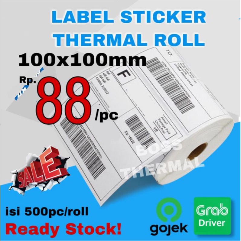 KERTAS LABEL THERMAL 100x100 isi 500 STICKER BARCODE THERMAL 10X10