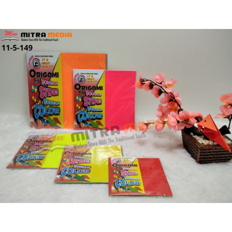 kertas lipat dengan warna warni yang super cerah di tiap sisinya, berbahan kertas tebal sehingga kita bisa berkreasi tanpa henti.