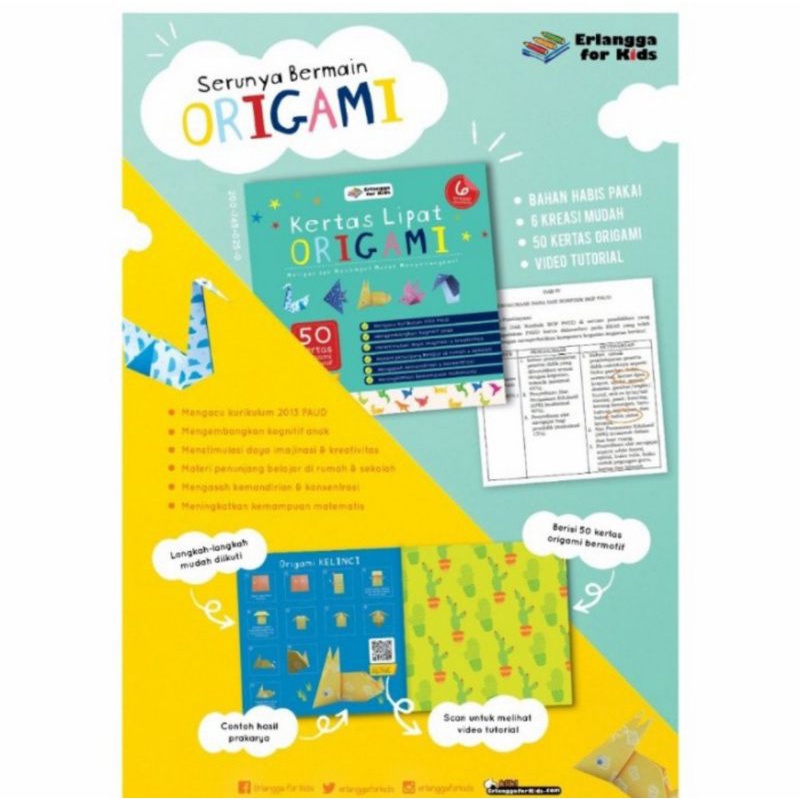*Kertas Lipat Origami* ini sangat tepat untuk dijadikan produk bahan bermain dan belajar selama Belajar dari Rumah. Produk ini dilengkapi dengan *video pembelajaran Kreasi Origami* untuk mendukung belajar berkreasi origami untuk di rumah maupun di sekolah.