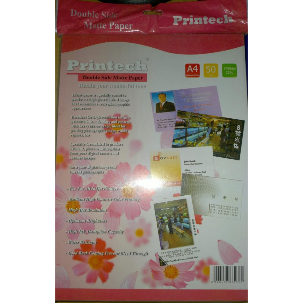 KERTAS PHOTO DOUBLE SIDE MATE PAPER PRINTECH 230GR A4