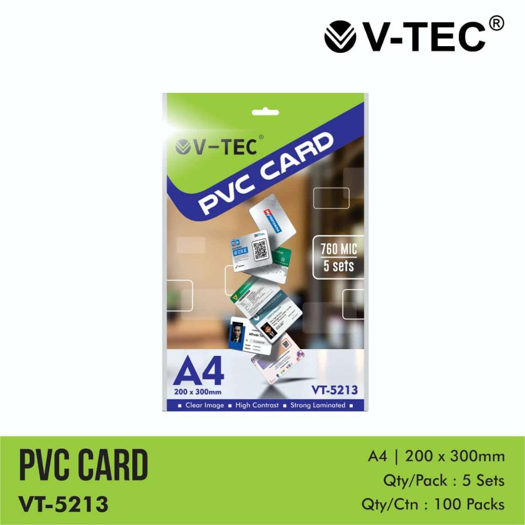 Kertas PVC ID Card A4 V-TEC VT-5213 – Printable Card Paper 760 Mic (1 Pack Isi 5 Set)