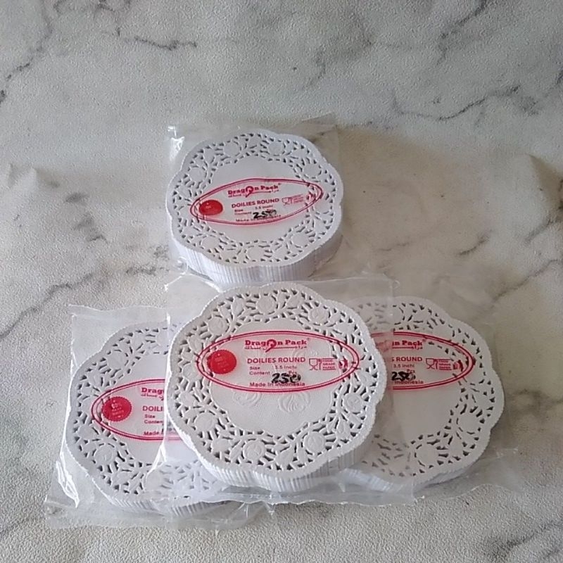 Kertas renda alas toples tabung dengan ukuran 8,5 cm isi 250 lembar.