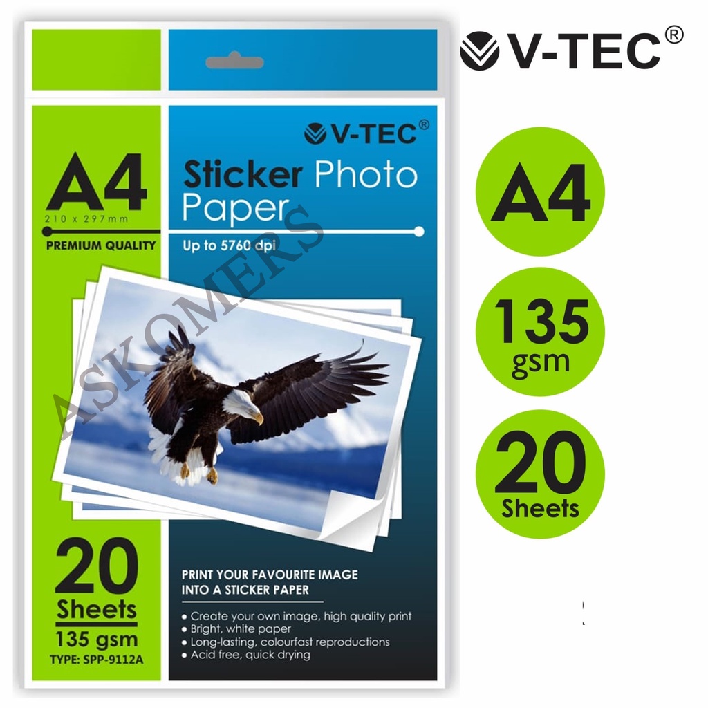 KERTAS STIKER FOTO A4 V TEC (code 58 22 89)