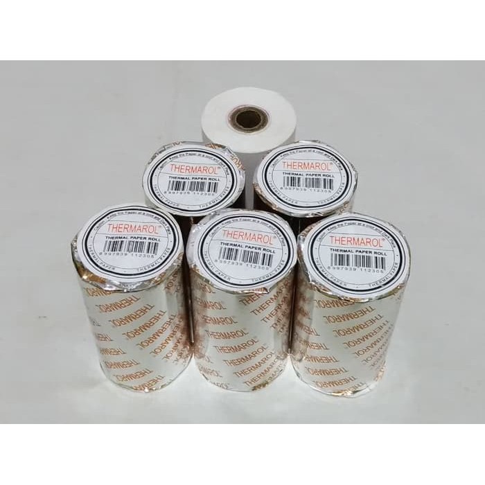 KERTAS KASIR 80 MM X 50 MM KERTAS THERMAL PAPER MERK THERMAROL tidak mudah putus, lapisan thermal tidak mudah hilang, hasil cetkan tajam dan tahan lama.