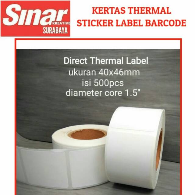 KERTAS THERMAL LABEL STICKER BARCODE 5 ROL SIZE 40x46mm - ISI 500 PCS - 1 Line