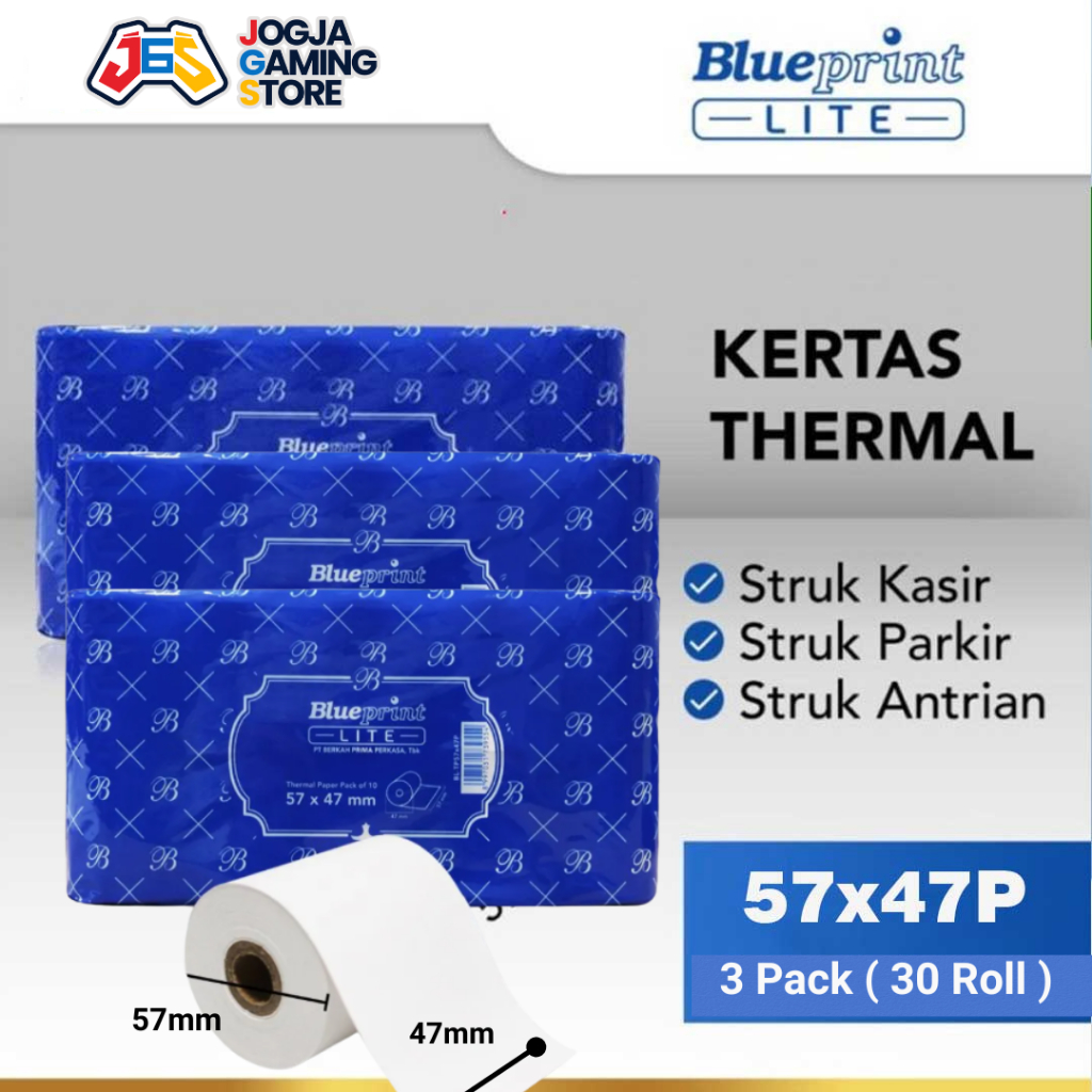 KERTAS THERMAL MURAH PAPER ROL STRUK KASIR POS BLUEPRINT LITE 57x47P - 3 PACK 30 ROLL
