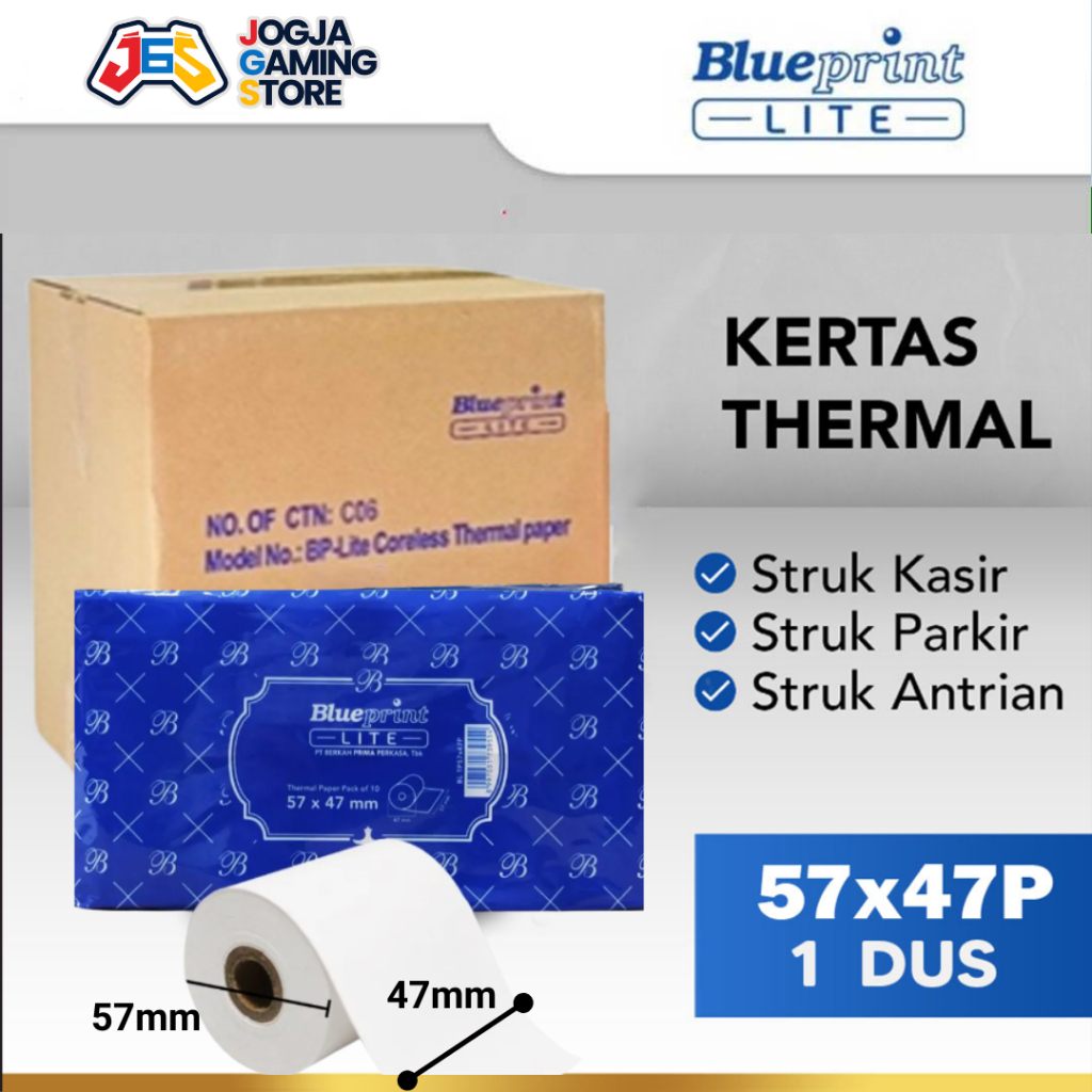 KERTAS THERMAL PAPER ROL STRUK KARCIS PARKIR POS BLUEPRINT LITE 57x47P 57x47 - 1 DUS 100 ROLL
