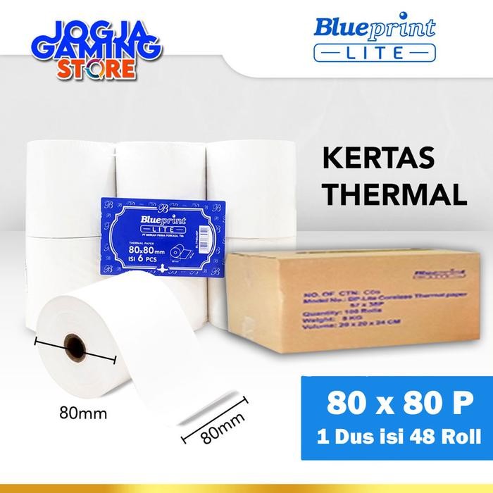 KERTAS THERMAL ROL STRUK KASIR BLUEPRINT LITE 80x80P - 1 Dus 48 Roll