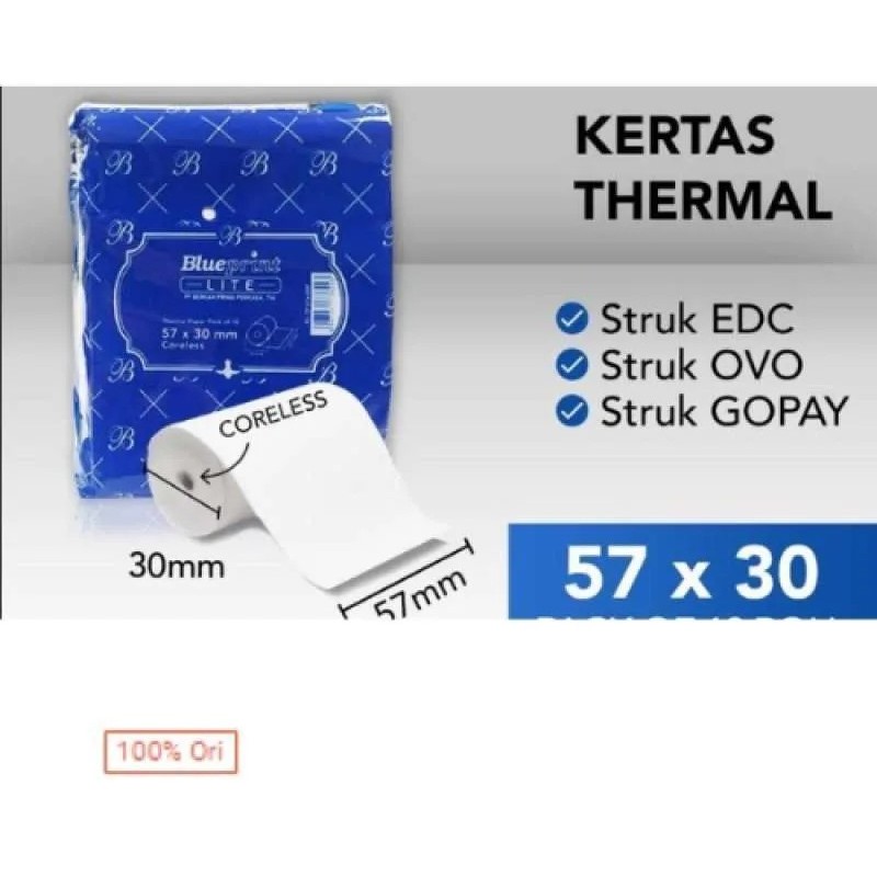KERTAS THERMAL / STRUK KASIR BLUEPRINT LITE 57 X 30 MM 1 PACK ISI 10 ROL