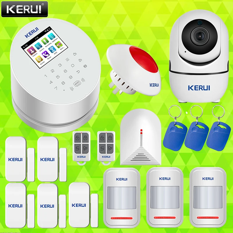 KERUI WiFi GSM PSTN Alarm System APP Control Wireless Home Security with Indoor 720P HD Camera Glass Break Detector Alarm Syste