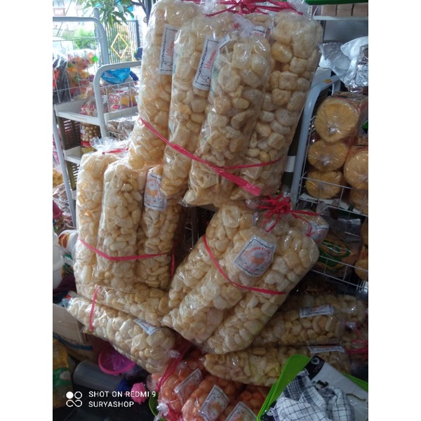 kerupuk kulit original.dijamin renyah,kriuk asin gurih dan balada.kemasan besar 150gram.pengiriman kena volume ya.