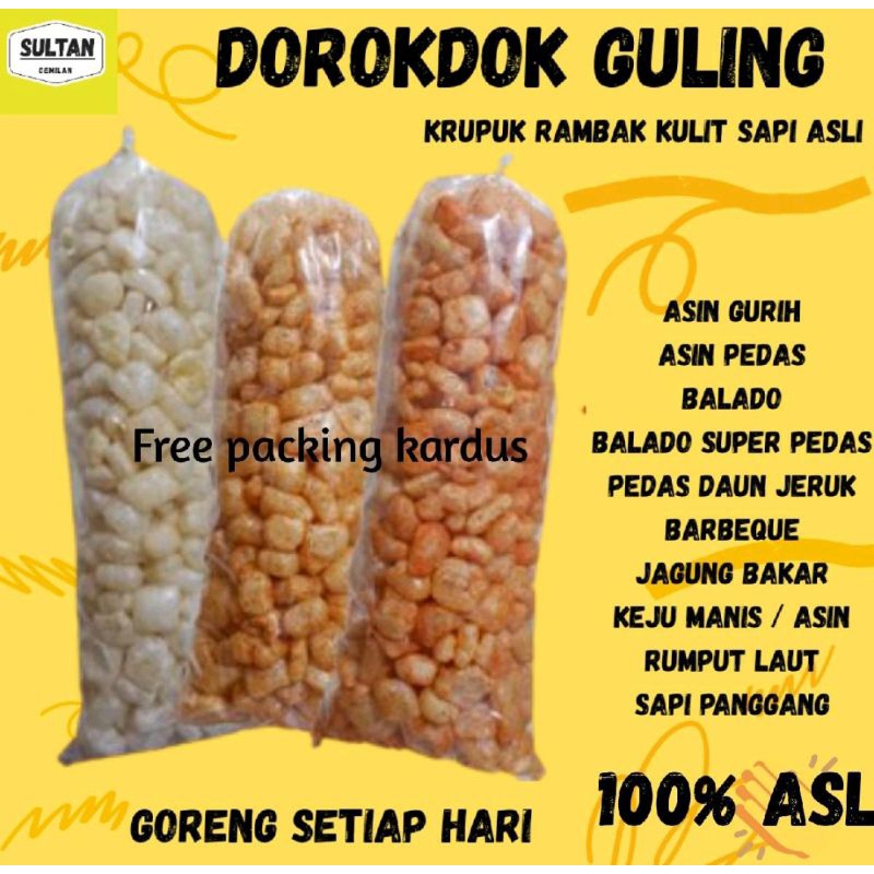 KERUPUK KULIT SAPI HALAL RAMBAK SAPI ASLI DOROKDOK ANEKA RASA SUPER RENYAH 1 BAL 200 GR