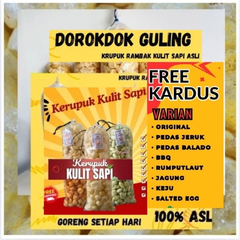 KERUPUK KULIT SAPI RAMBAK SAPI DOROKDOK ASLI ANEKA RASA SUPER RENYAH 1 BAL 200 GR