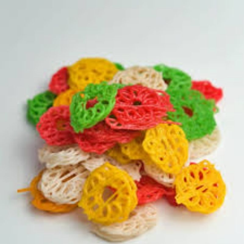 Kerupuk kepang warna warni terbuat dari bahan asli berkualitas rasanya enak, cocok dijadikan cemilan setiap saat ataupun teman makan untuk berbagai macam menu makanan sehari-hari. Bisa juga digunakan untuk menu seblak dengan cara direbus.