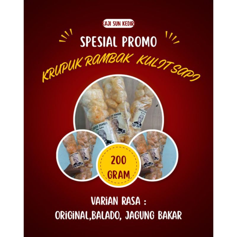 Kerupuk Rambak Kulit Sapi Khas Kediri dengan berbagai varian rasa. Berat 200 gram.