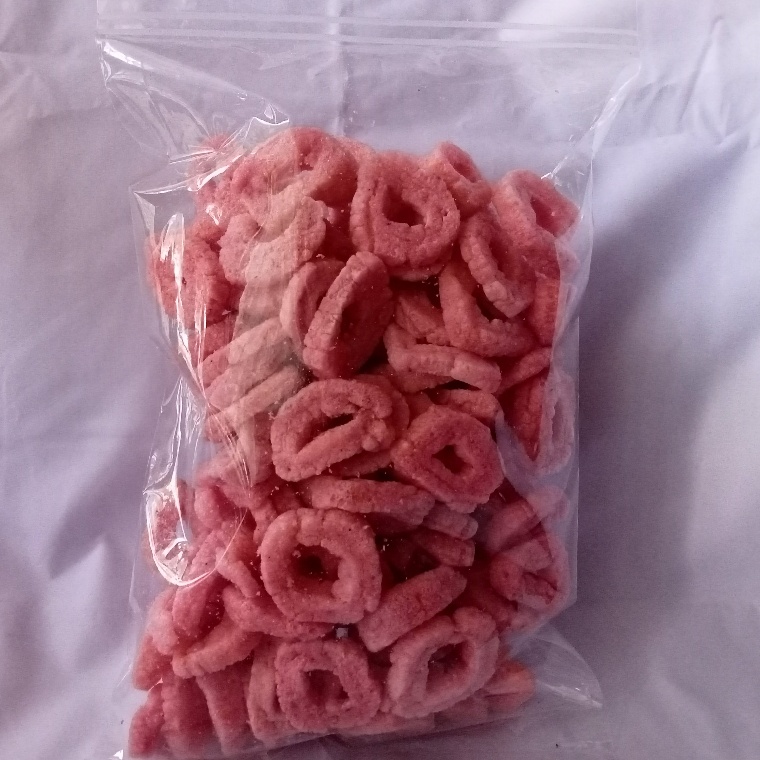 Cemilan dengan bentuk ciri khas seperti ring atau cincin bulat di tambah bumbu membuat rasa kerupuk ini gurih dan enak tentunya. Renyah gurih rasanya bikin nagih dan nagih....kerupuk favorit anak sampai orang dewasa. Di makan langsung enak atau di makan sama yang lain enak juga tentunya (bakso misalnya)