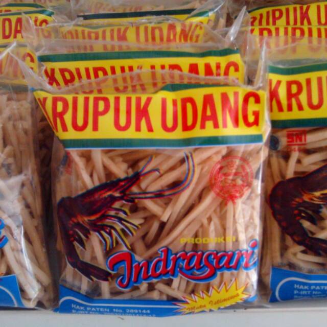 Kerupuk udang berbentuk STICK merk Indrasari, asli Indramayu. Kualitas Istimewa. Kualitas terbaik/mutu tertinggi dari merk Indrasari. Kemasan 250gr. Mentah, langsung goreng.