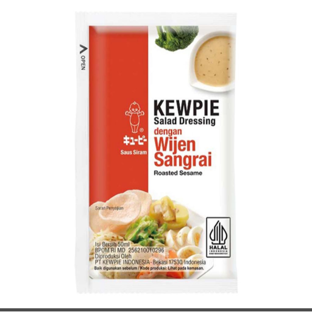 KEWPIE Salad Dressing dengan Wijen Sangrai Sachet 50 ml merupakan saus siram yang dilengkapi dengan wijen sangrai. Hadir dalam kemasan praktis sachet. Saus dengan wijen persembahan KEWPIE ini dapat dijadikan sebagai salad dressing maupun topping pada berbagai jenis masakan favorit Anda. Produk KEWPIE ini mampu menambah cita rasa gurih pada masakan.