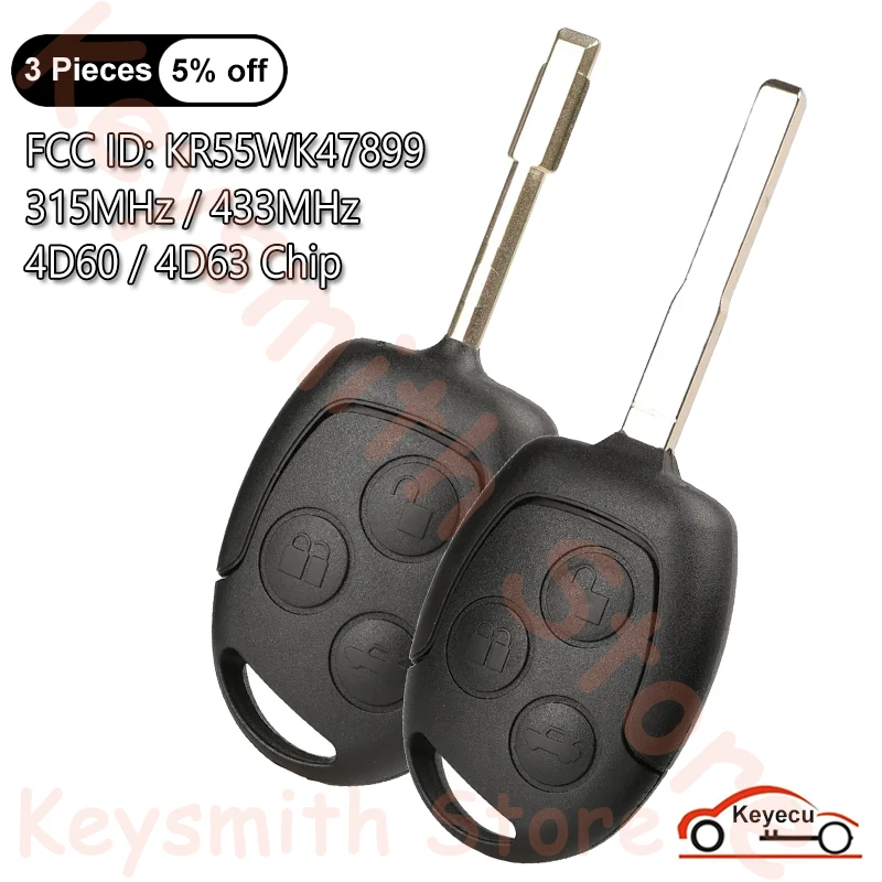 KEYECU 3 кнопки 315 МГц 433 МГц 4D60 4D63 чип для Ford Focus Fiesta Fusion C-Max Mondeo Galaxy C-Max S-Max автоматический пульт дистанционного управления