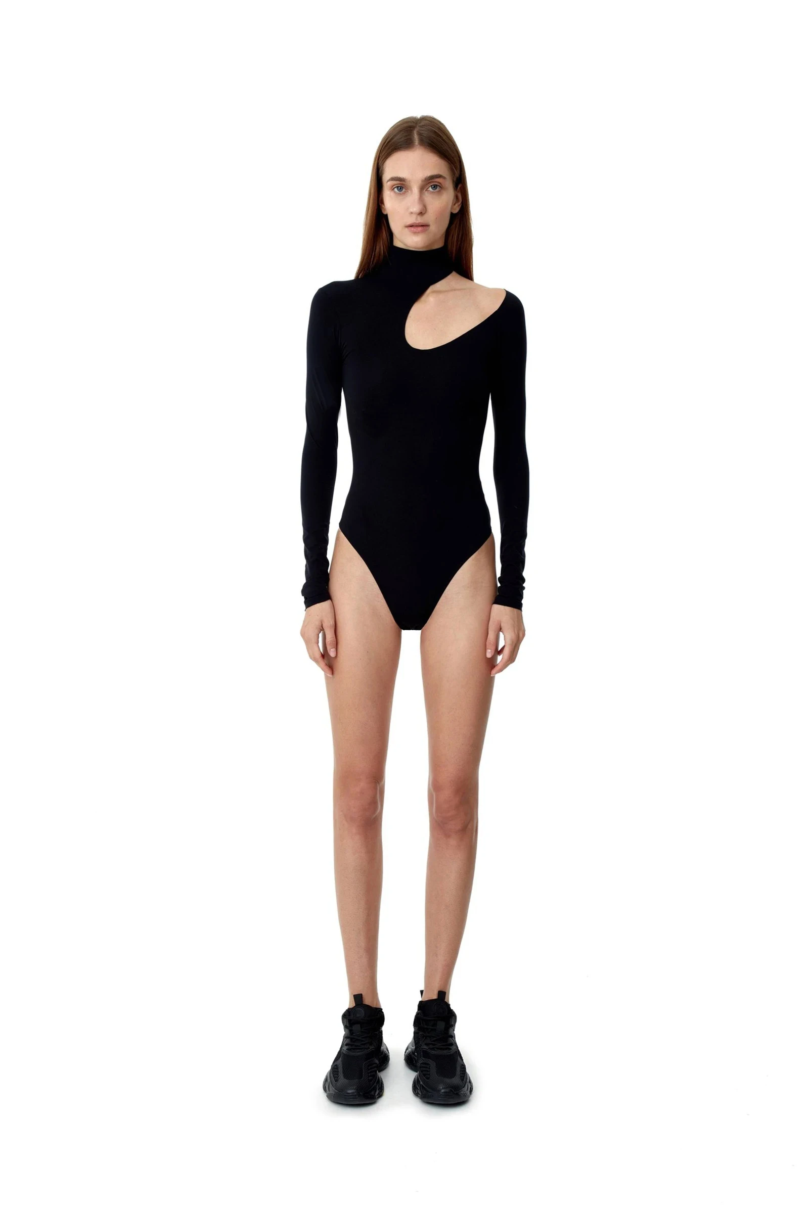 KGFIGU боди для женщин 2021 осенняя одежда с длинным рукавом с высоким воротником с вырезами сексуальное боди элегантный однотонный Универсальн...