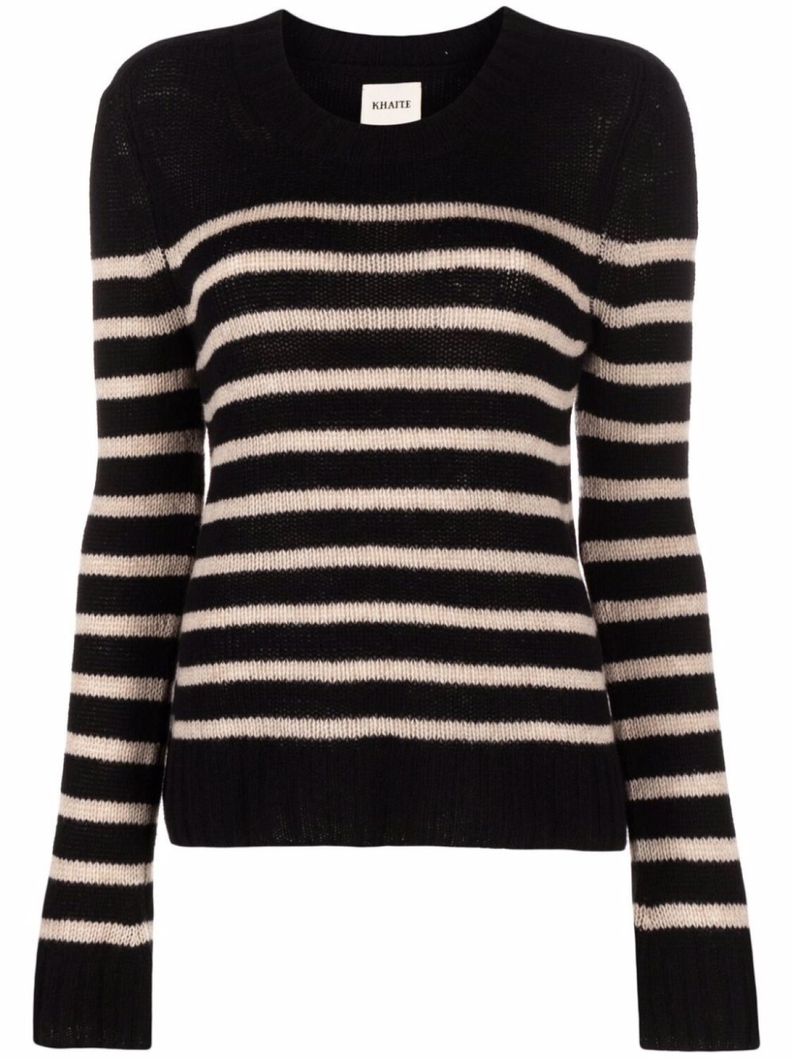 KHAITE кашемировый джемпер The Tilda в полоску, черный