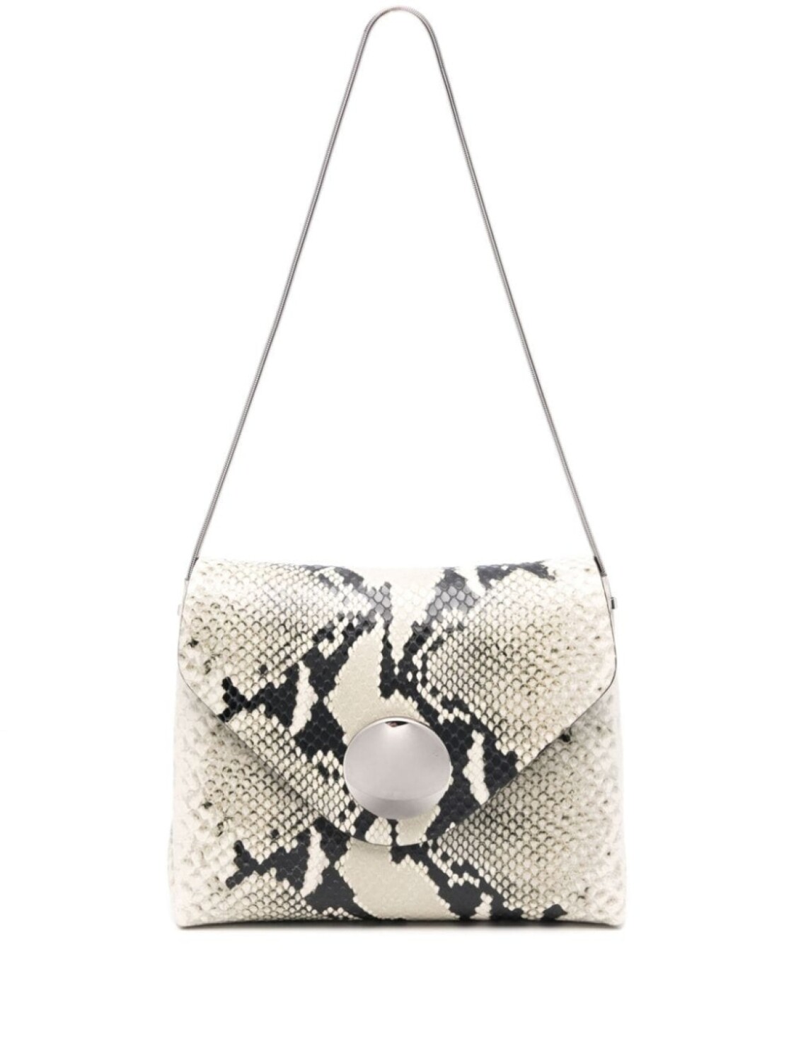 Подробнее о товаре: • бежевый/разноцветный • кожа • принт с тиснением под кожу питона • ремень-цепочка для сумки • металлический декор спереди • основное отделение • тисненый логотип внутри • откидной верх на магнитной застежке • В комплект входит мешок-пыльник для хранения.