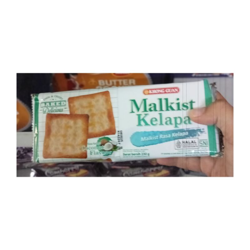 Khong Guan Malkist Crackers Kelapa, biskuit malkist renyah dengan rasa kelapa yang gurih. Ukuran 230 gram, pas untuk camilan ringan.