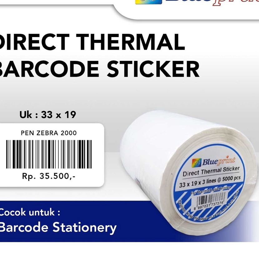 170724 | SP Stiker Barcode Label / Sticker Barcode Thermal BLUEPRINT Ukuran 33mm X 19mm Spesifikasinya : - Bahan Baku : Direct Thermal Sticker - Ukuran Lebar 33 mm Tinggi 19 mm - Diameter core (lubang tengah) 1 Inch - Terdiri dari 3 Line/Baris - Pakai GAP/JEDA yaitu Gap 3mm - Isi 1 Roll : 5000 Pcs - Perforasi (Bisa di sobek) - Label Barcode ini dapat digunakan untuk Printer Barcode Desktop ataupun Industri Compatible untuk semua Printer Direct Thermal. Label sticker ini tanpa ribbon barcode untuk barcode thermal transfer printer, barcode direct thermal printer : Blueprint : TR110, TD110, TD110D, TD110X Label, Coatingnya BPA Free BLUEPRINT INDONESIA PT. Berkah Prima Perkasa. Tbk PELAYAN DAN KUALITAS : ✅ Kami selalu menggunakan bahan pilihan yang berkualitas dan terbaik, sehingga customer nyaman untuk menggunakan produk dari KAMI. ✅ Memberikan pelayanan yang baik, cepat, dan ramah, serta bertanggung jawab terhadap seluruh paket pelanggan ✅ Begaransi apabila barang yang diterima tidak sesuai atau cacat ✅ 100% PRODUK ORIGINAL ✅ BEST PRICE & GOOD QUALITY ✅ FOTO REAL PICT DARI TOKO KAMI ✅ JANGAN LUPA BERIKAN PENILAIAN DAN BINTANG 5NYA YA ⭐⭐⭐⭐ GARANSI : ✅ Tidak perlu khawatir, kami berikan GARANSI RETUR BARANG tapi berlaku untuk tidak selesaikan pesanan dan tidak memberikan rating/penilain jelek. ✅ Silahkan LANGSUNG CHAT SEBELUM MEMBERIKAN RATING dan REVIEW ✅ Kami akan melayani Anda dengan senang hati. INFORMASI TOKO : ✅ Pengiriman Senin - Sabtu ✅ Minggu admin Libur tp masih bs order seperti biasa ✅ Jam Kerja Admin 08.00-18.00WIB ✅ Fast Respond di jam kerja ✅ Pesanan masuk lebih dari jam 16.00 akan diproses hari berikutnya ✅ Silahkan kirim pesan jika ada hal yang ingin ditanyakan mengenia produk, warna, maupun stock ✅ Jangan lupa follow dan like produk untuk mempermudah dalam pencarian produk dan produk terbaru setiap kami upload NOTE: ✅ wajib untuk menyertakan bukti berupa foto ataupun video saat unboxing paket. Tanpa bukti kami tidak terima alasan komplain atau returan apapun. ~~>>>> Kepuasan pelanggan adalah tujuan utama kami >>>>> Terima Kasih Atas Kunjungan Anda RESELLER & DROPSHIPER WELCOME