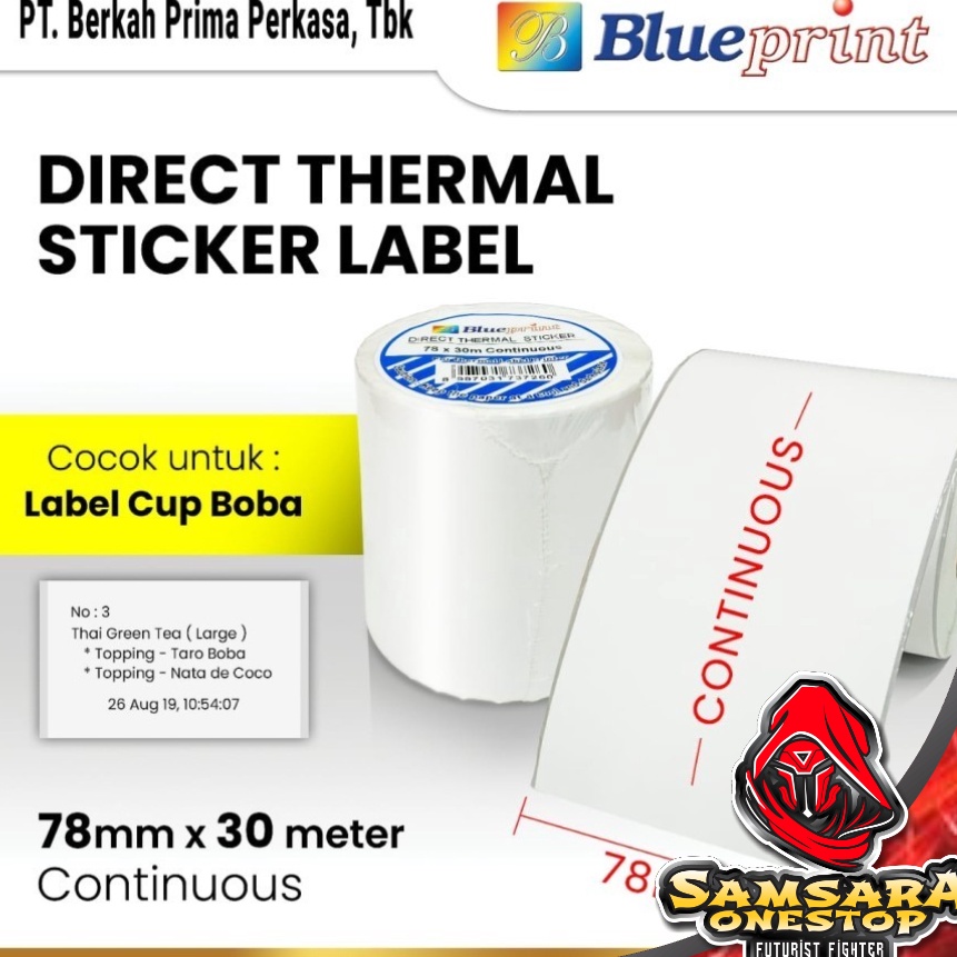 KI3 Direct Thermal Sticker Label Continuous BLUEPRINT 78x3 Meter 78 x 3