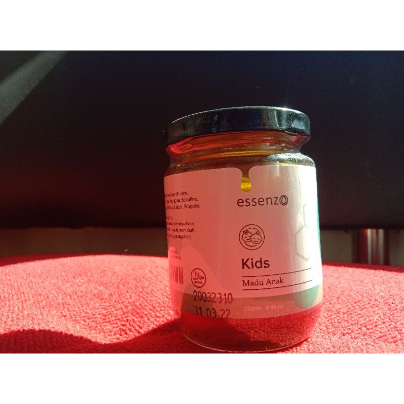 essenzo kids honey mengkombinasikan madu berkualitas tinggi dengan sari kurma , ekstrak temulawak, ekstrak jahe,spirulina, pegangan,propolis,minyak zaitun, dan minyak habbatussaudah,. madu anak adalah madu yang diformulasikan kesehatan tubuh serta meningkatkan nafsu makan, sehingga sangat baik dikonsumsi untuk menunjang tumbuh kembang dan aktivitas anak.