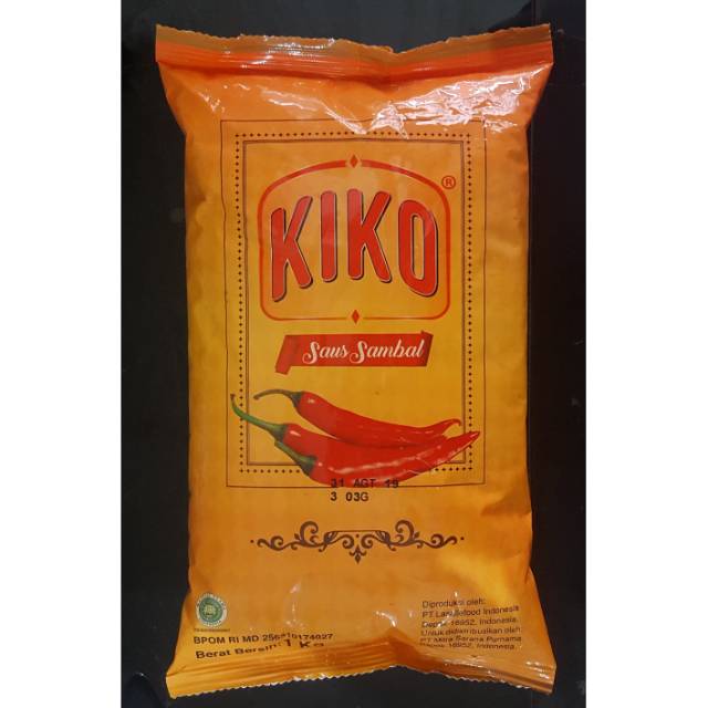 Produk Olahan saus dari KIKO yang tersedia dalam kemasan bantal dengan berat 1 kg . produk ini dahulunya mempunyai nama merek delmonte chili polos 1 kg. Pda bulan awal november berganti nama menjadi KIKO SAUS SAMBAL 1 KG