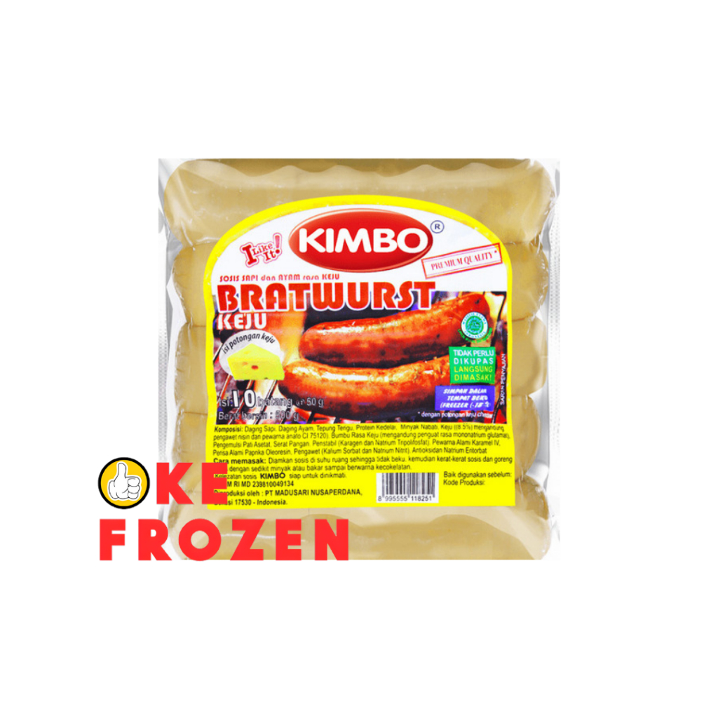 KIMBO BRATWURST KEJU 500GR ISI 10PCS / SOSIS SAPI DAN AYAM RASA KEJU