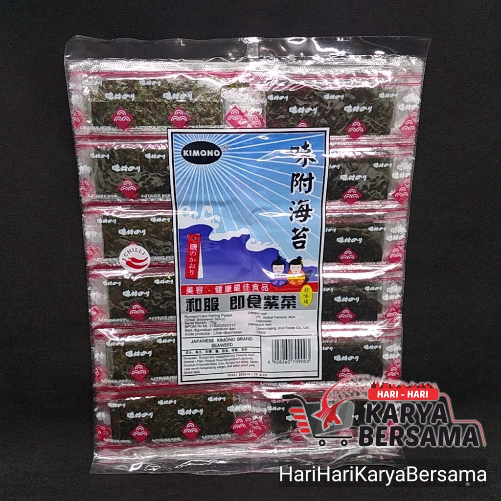 Bagi kalian pecinta makanan jepang, Kimono memproduksi produk seaweed dengan perpaduan rasa asin, manis dan gurih yang nikmat