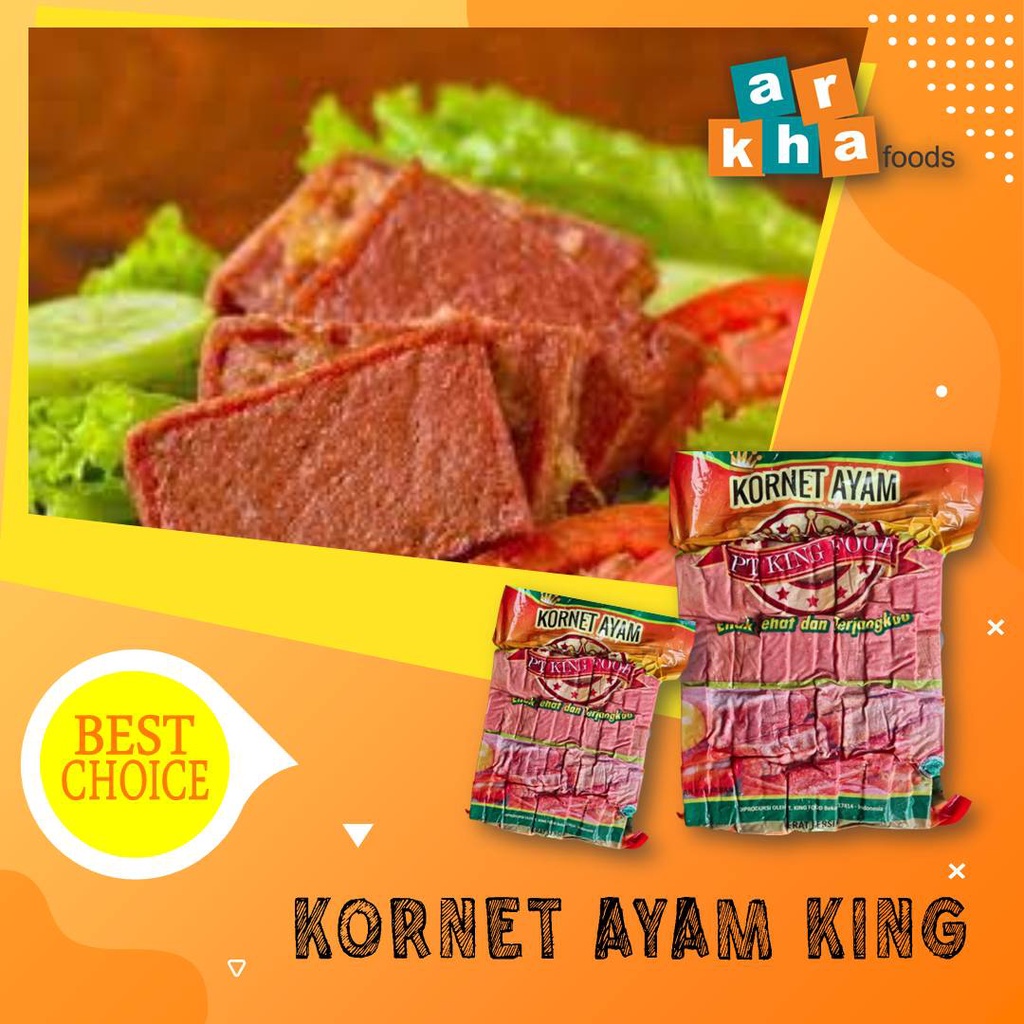 King Kornet Ayam 1Kg Terbuat dari daging ayam dengan aroma asap yang khas.