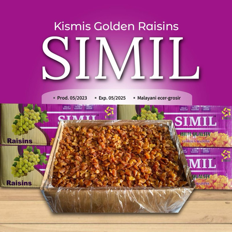 "Kismis Golden Raisin (SIMIL) adalah varietas kismis dengan ukuran yang besar, memiliki rasa asam segar, dan warna kuning cerah. Menjadi salah satu primadona sebagai oleh² haji/umroh, toping masakan timur tangah, cemilan sehat, dll. "